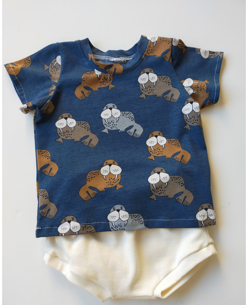 Conjunto precioso compuesto por camiseta y pantaloncito tipo bummies.
