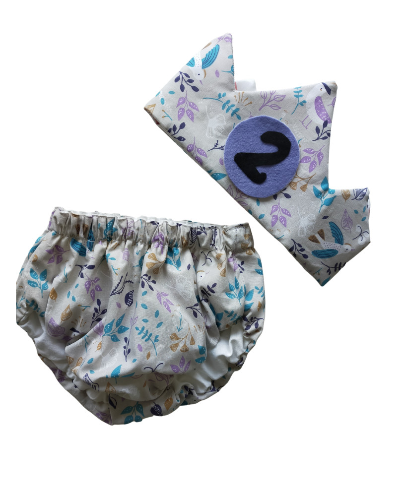 conjunto de braguita o cubrepañal con corona, viene con 4 números (normalmente del 1-4) para celebrar el cumpleaños de los más pequeños. si deseas que los números sean diferentes indicar en comentarios al realizar el pedido