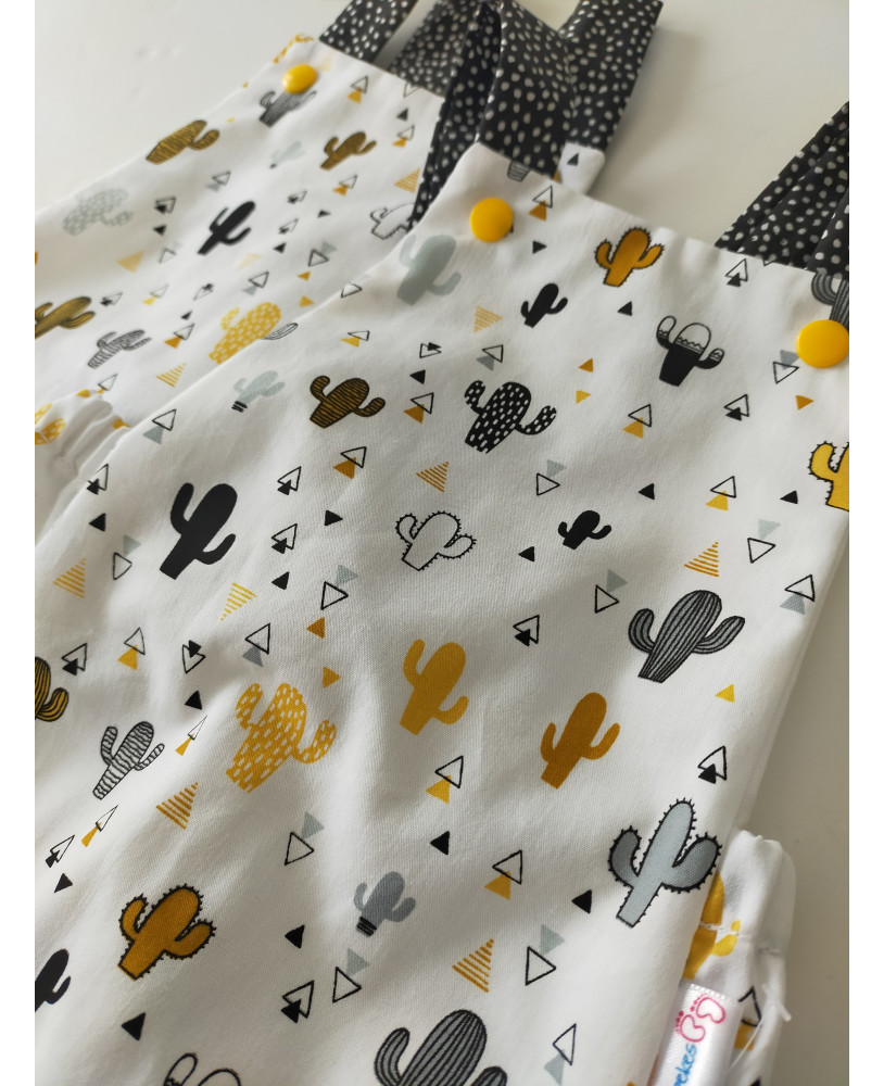 esta realizado en tela de algodón 100% por lo que es ideal para la piel. puedes utilizarlo en pleno verano sin nada más y ponerle una camiseta manga corta, o manga larga según el tiempo. los peques estarán guapísimos.